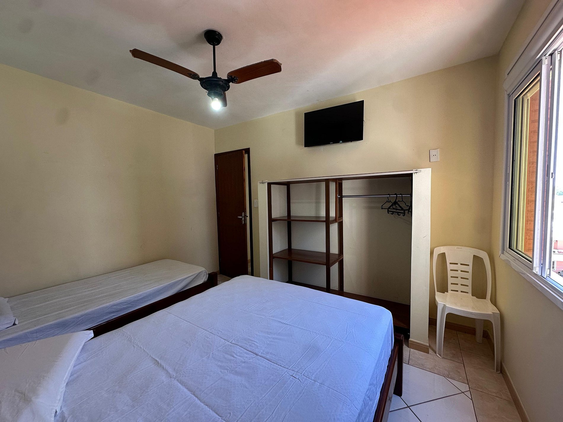01 dormitório de casal com ar condicionado + 1 cama de solteiro;