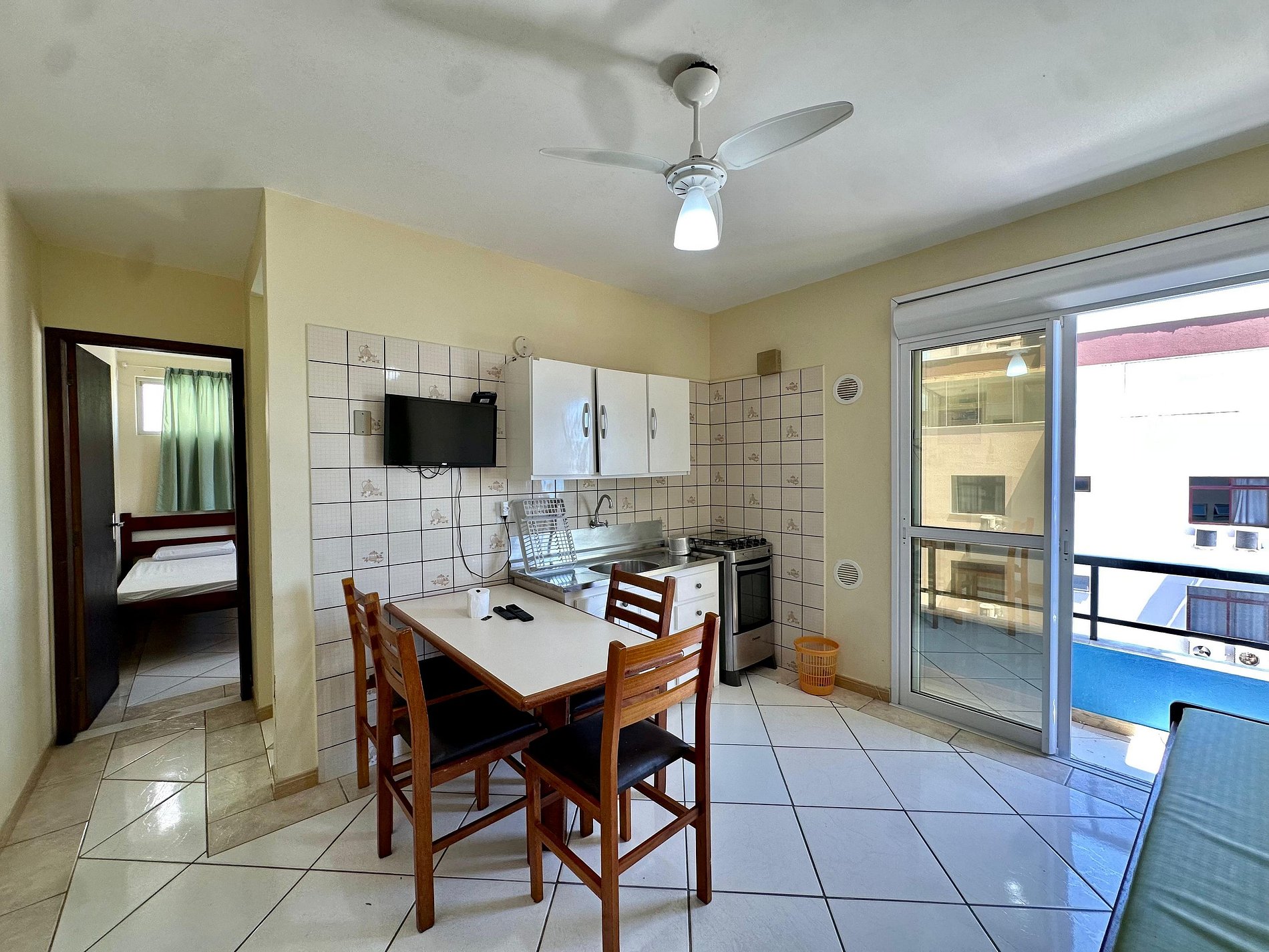 Residencial BERG, localizado na Avenida principal do Centro de Bombinhas, a aproximadamente 50 metros do mar- Apartamento de 01 dormitório, para até 04 pessoas, conta com: