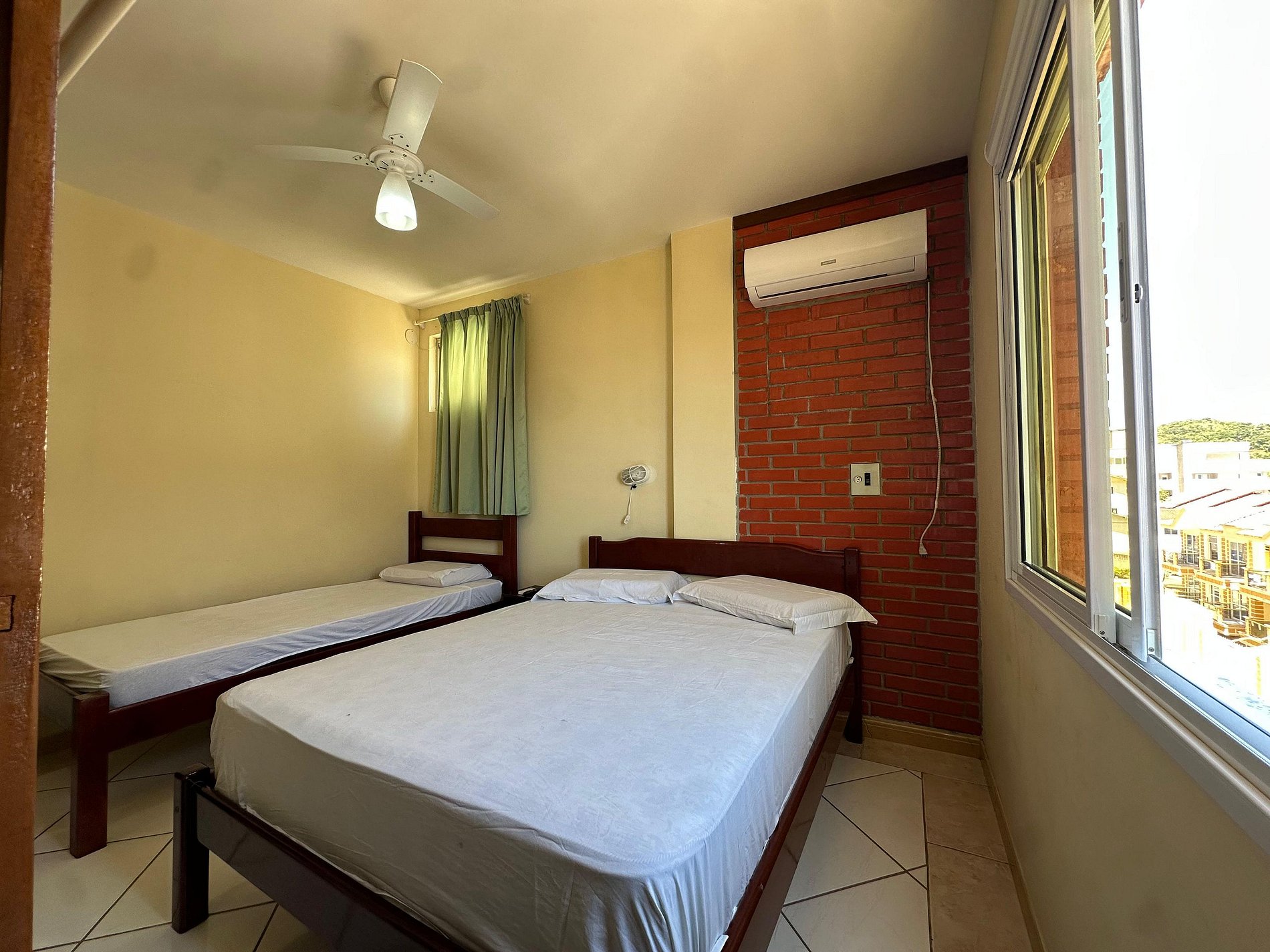 01 dormitório de casal com ar condicionado + 1 cama de solteiro;