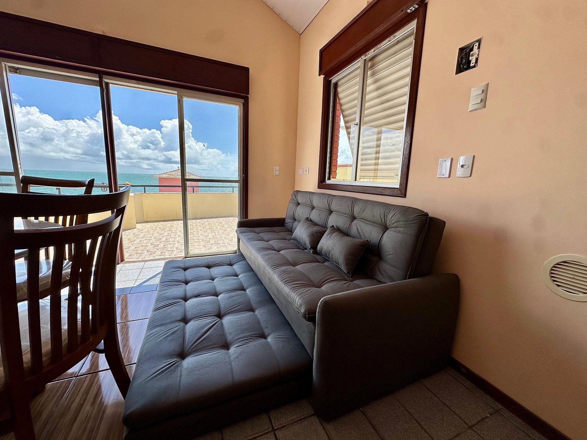 Ampla sacada com vista para o mar