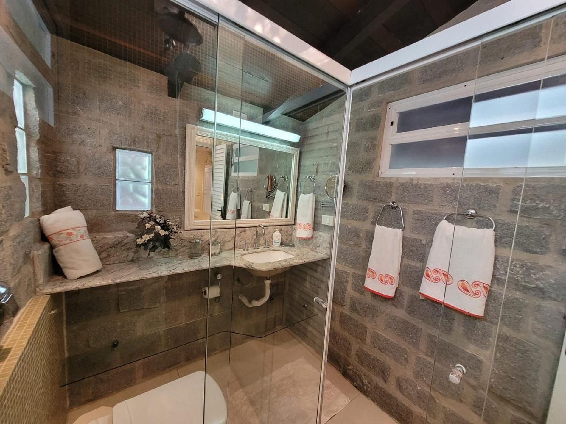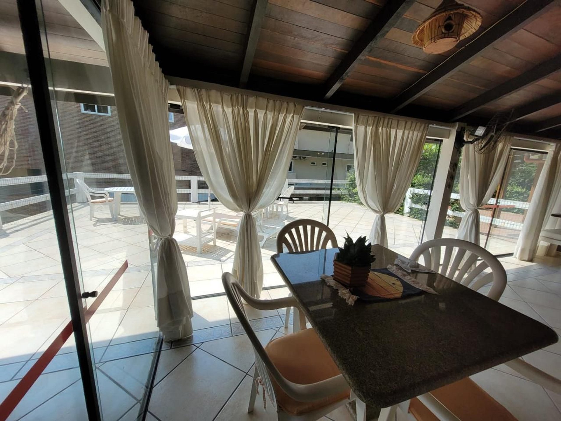 Área externa com vista mar;