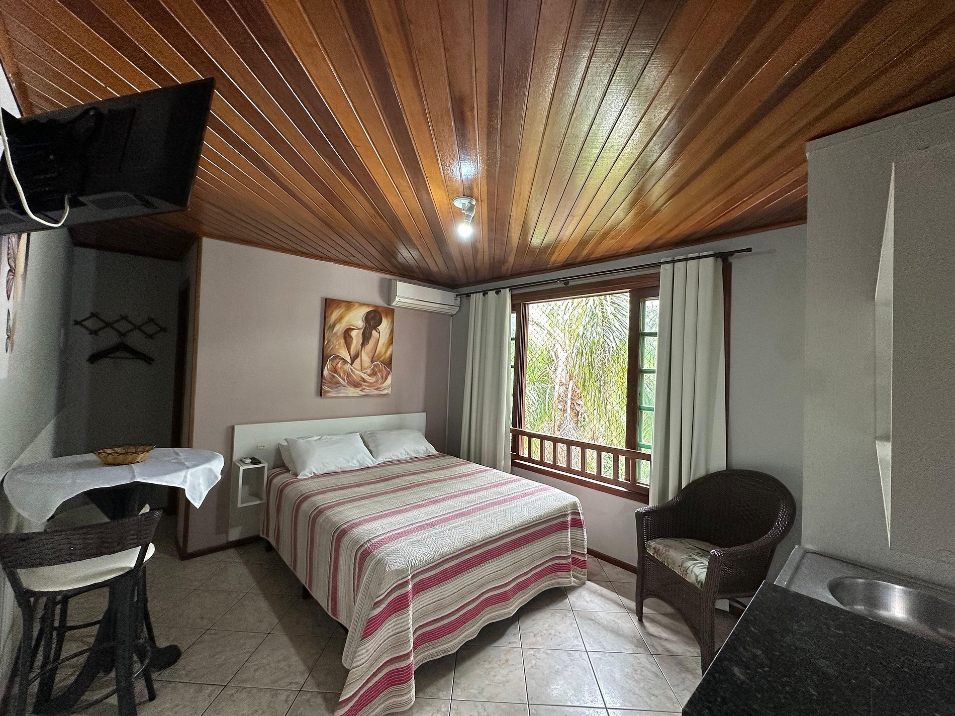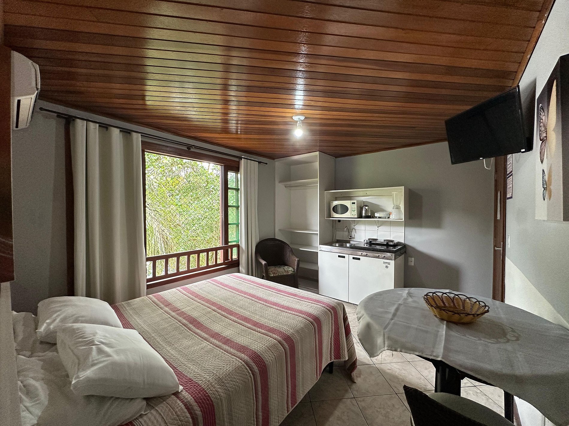 Conta com cama de casal, cozinha básica, frigobar;