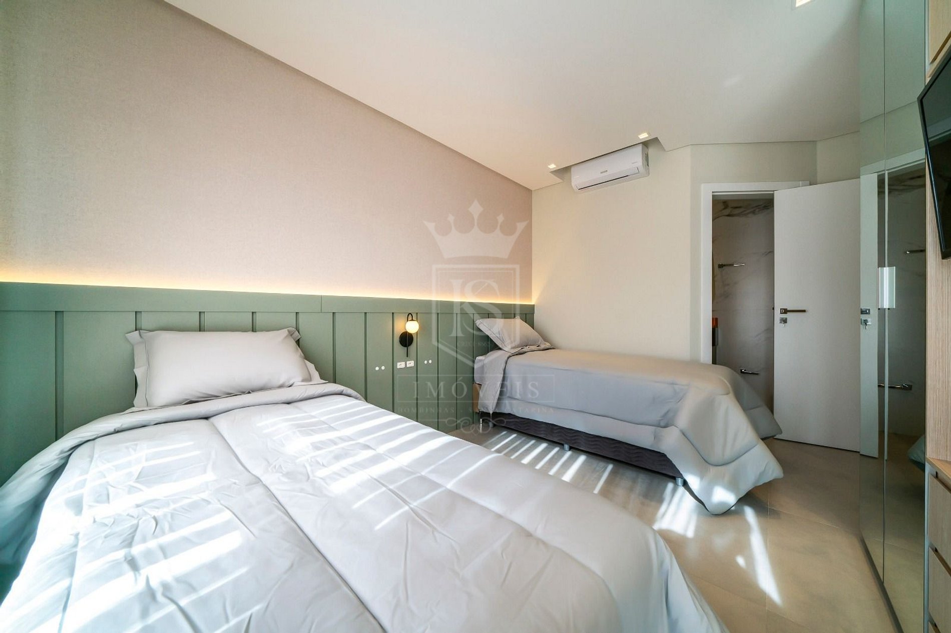 - 01 suíte com 02 camas de solteiro, com ar condicionado;