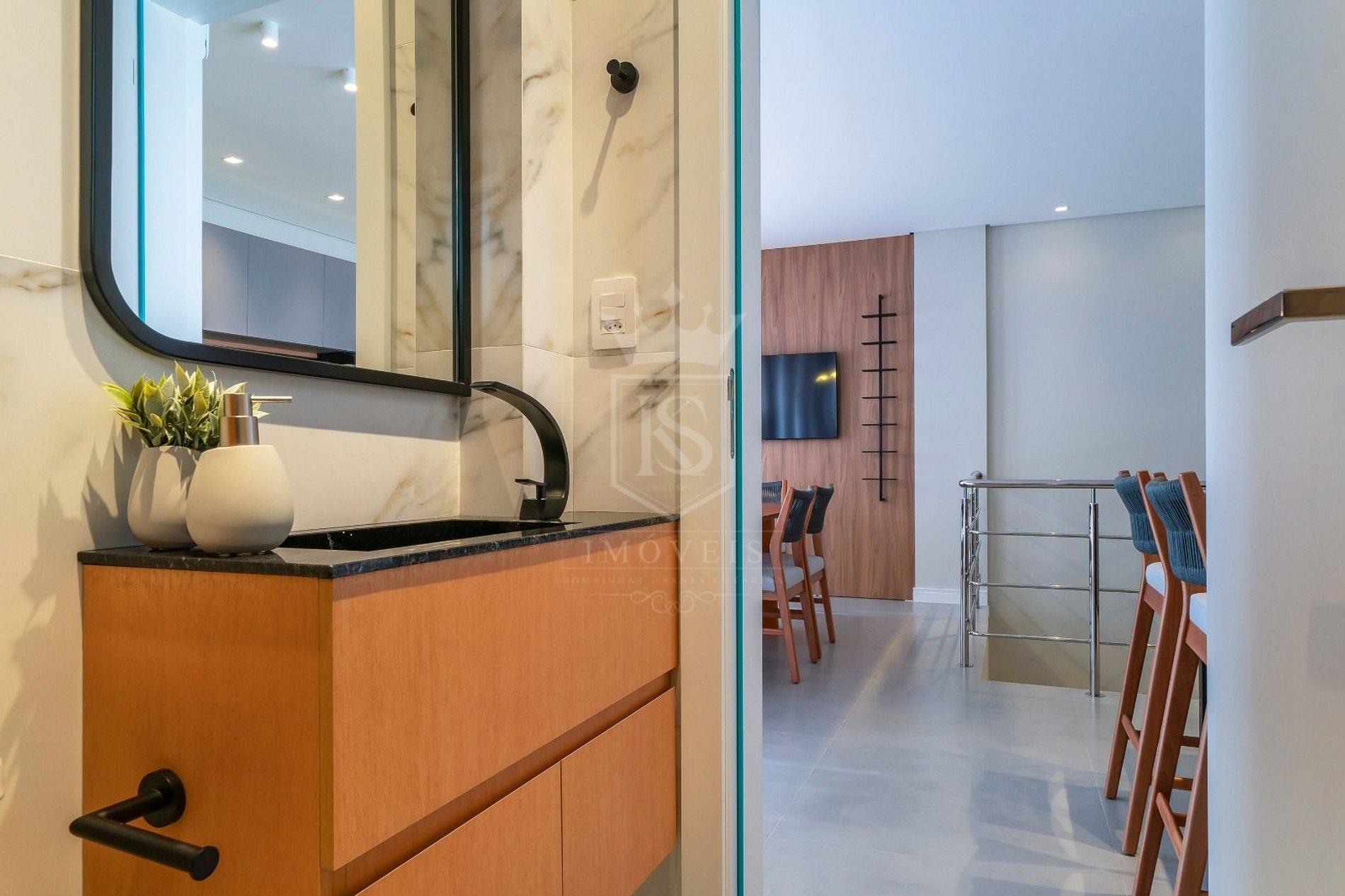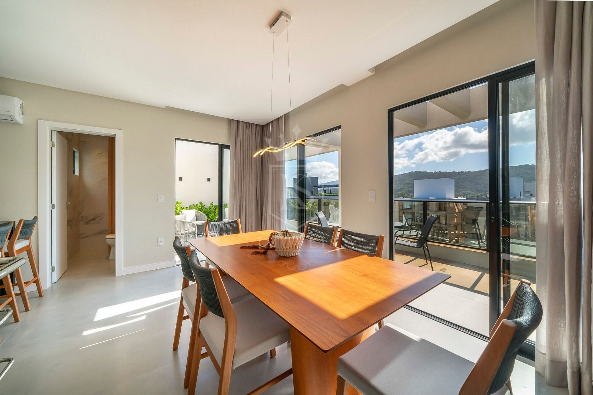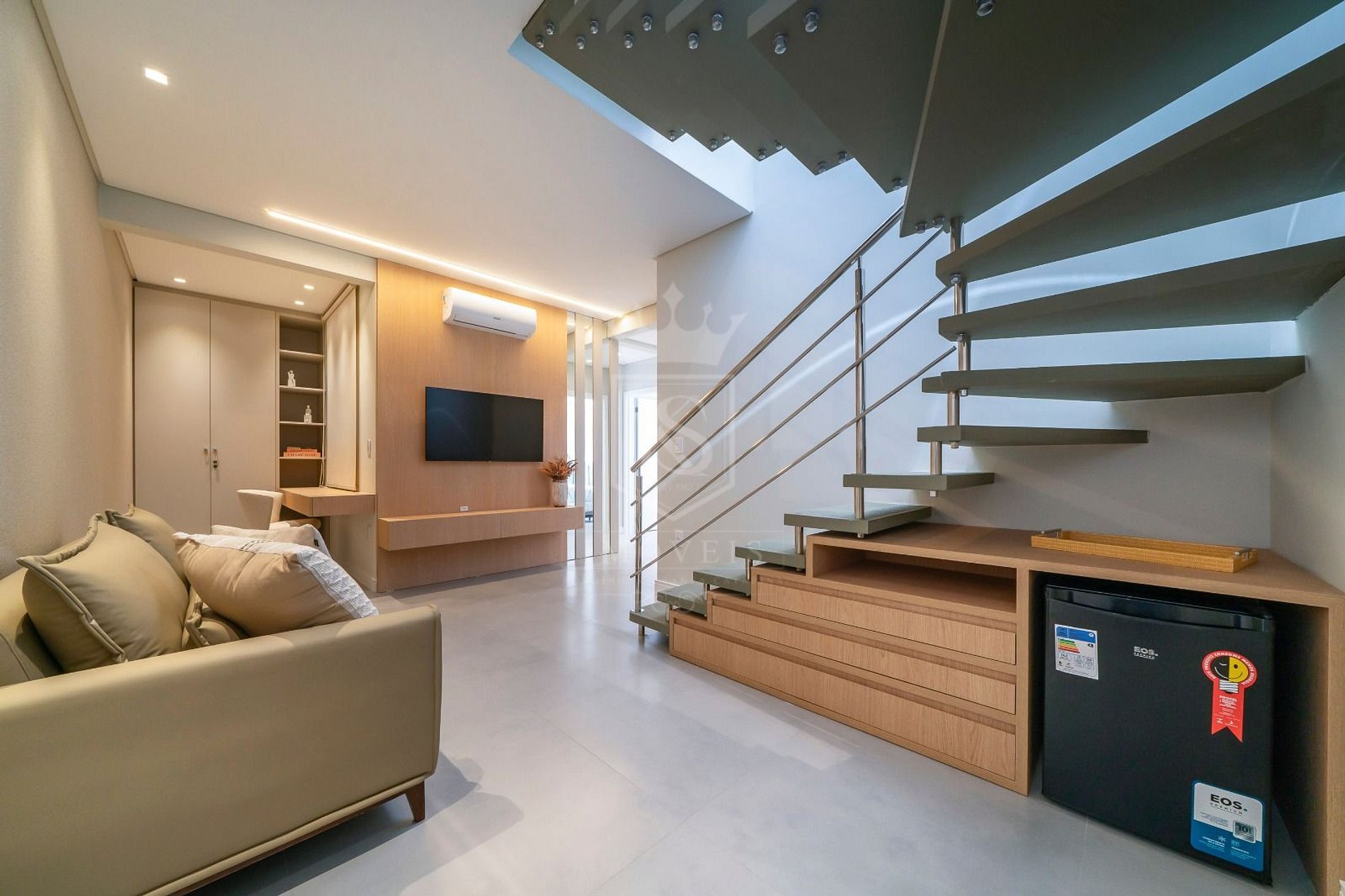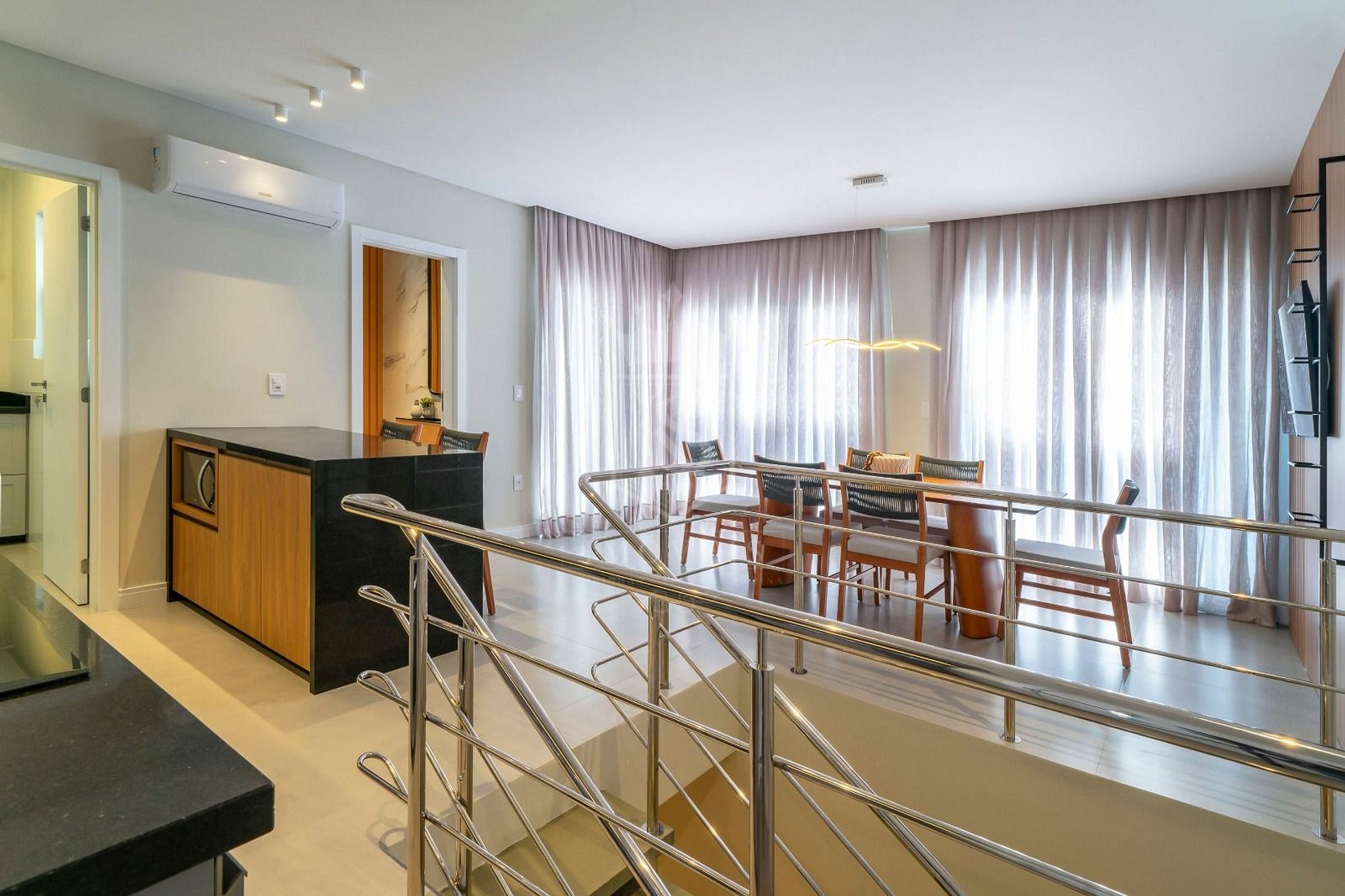 - Sala de estar com ar condicionado e SMART TV;