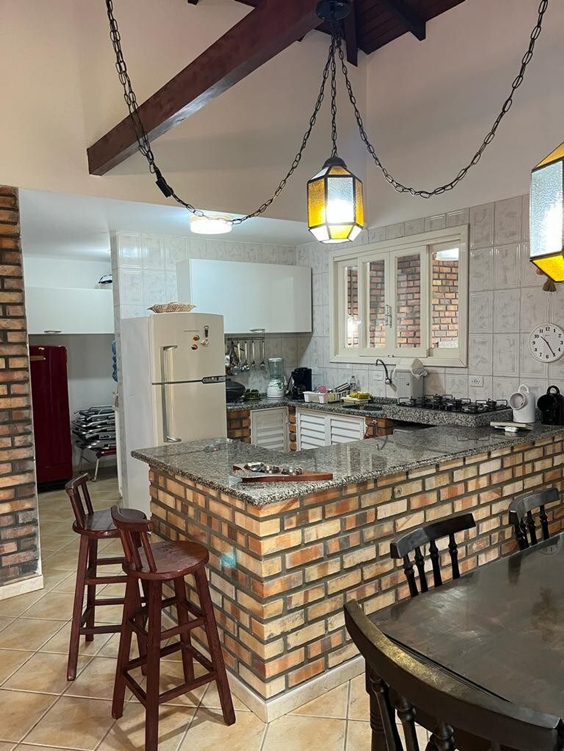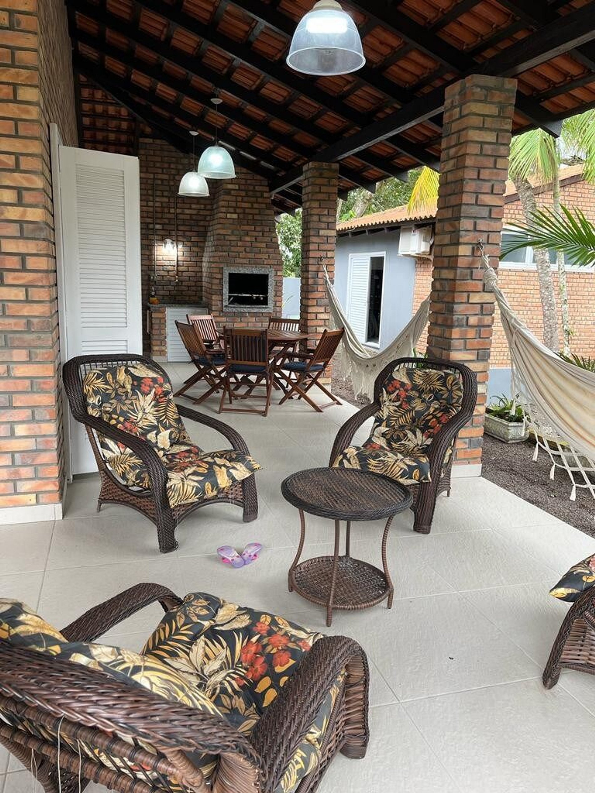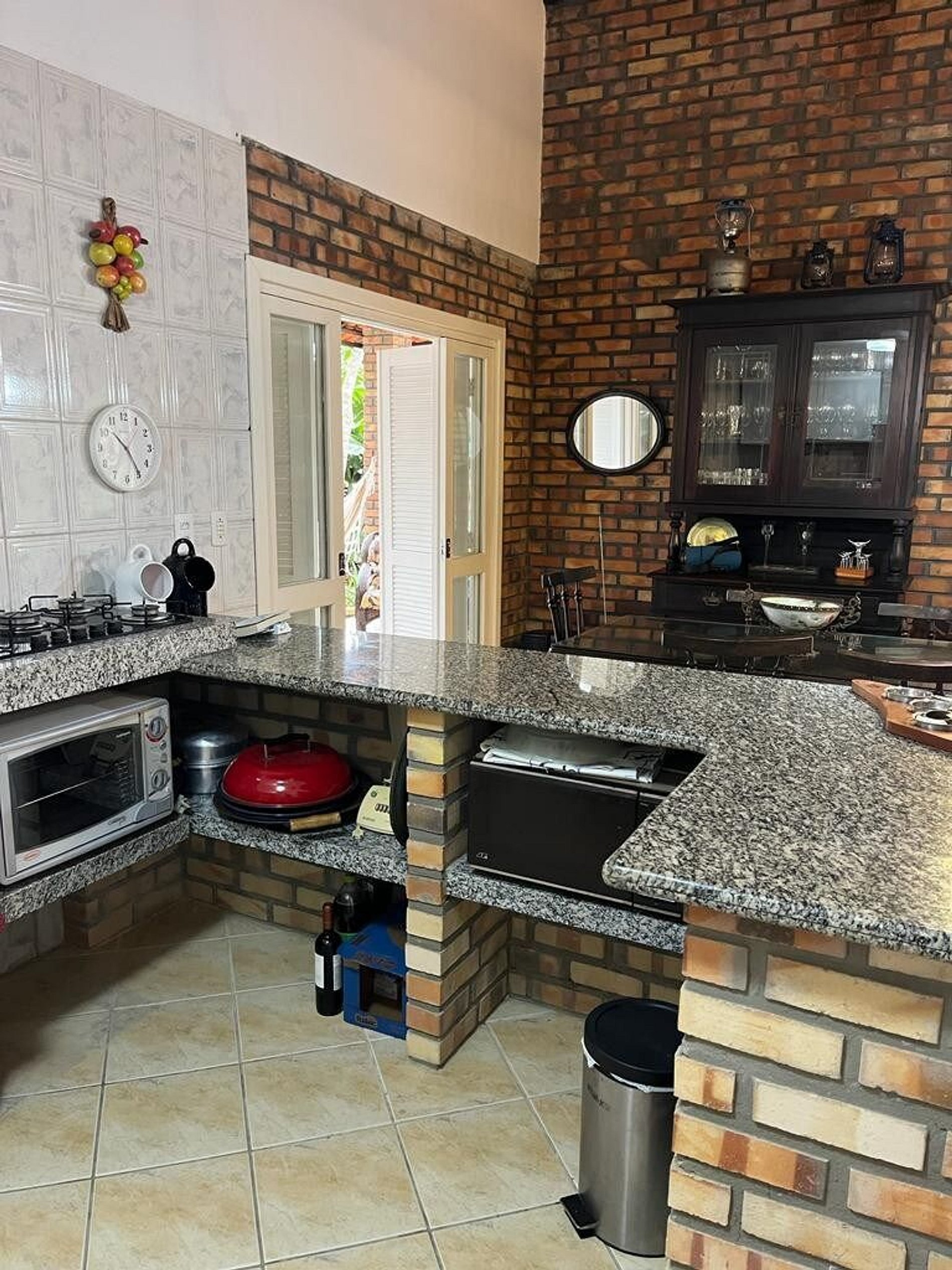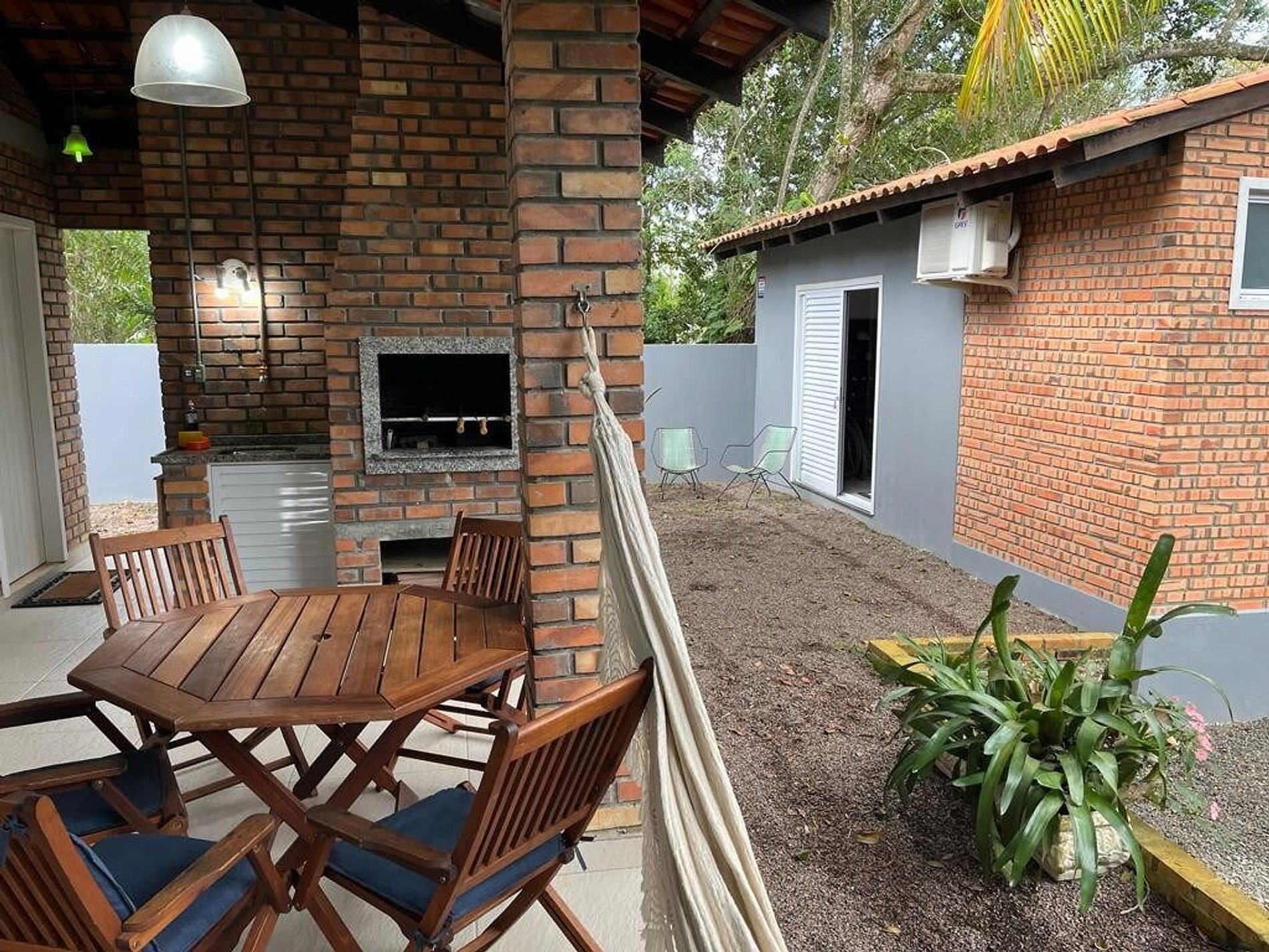 Área externa com churrasqueira, grelha e espeto;