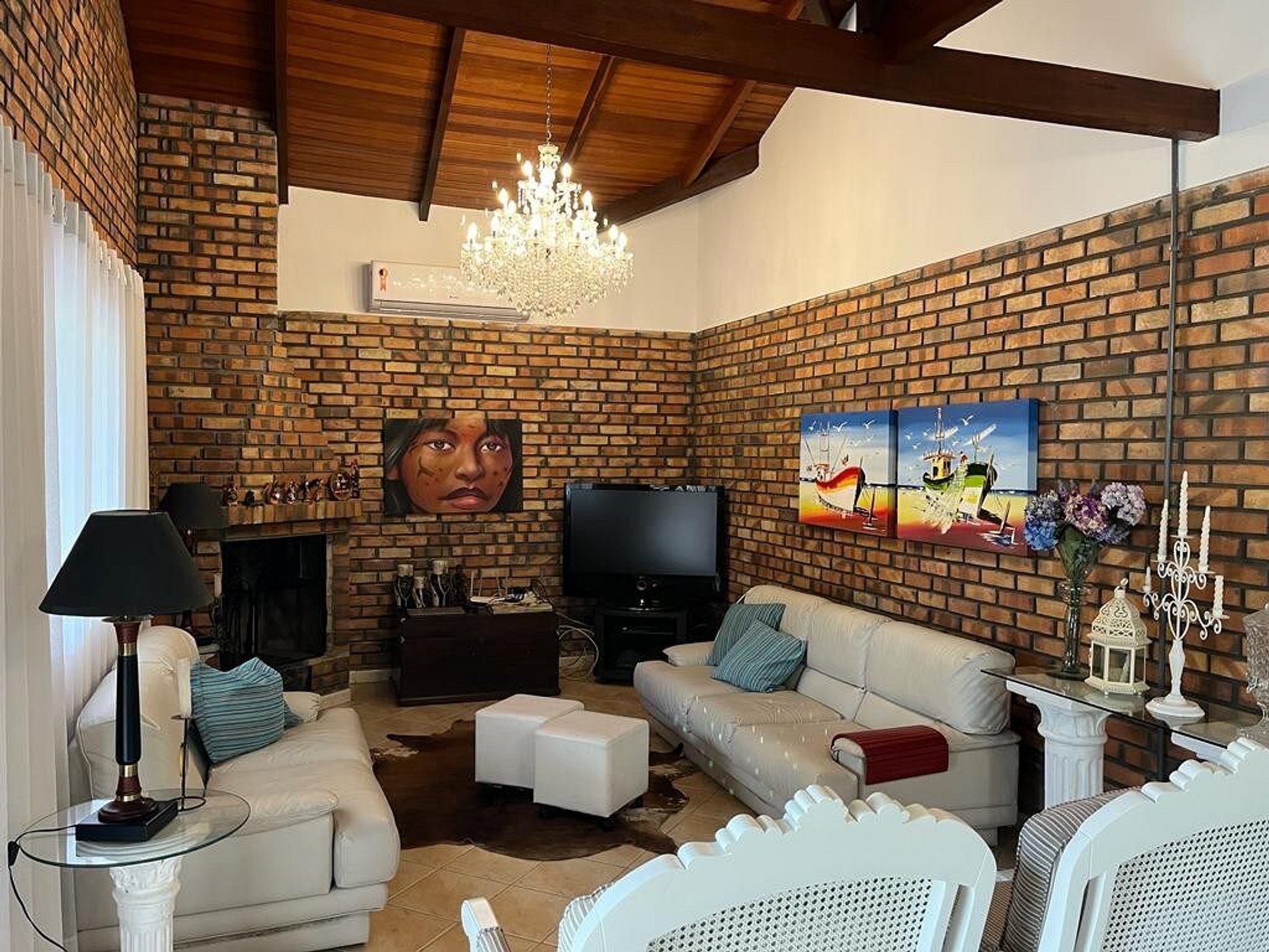 Sala de estar com TV e ar condicionado;