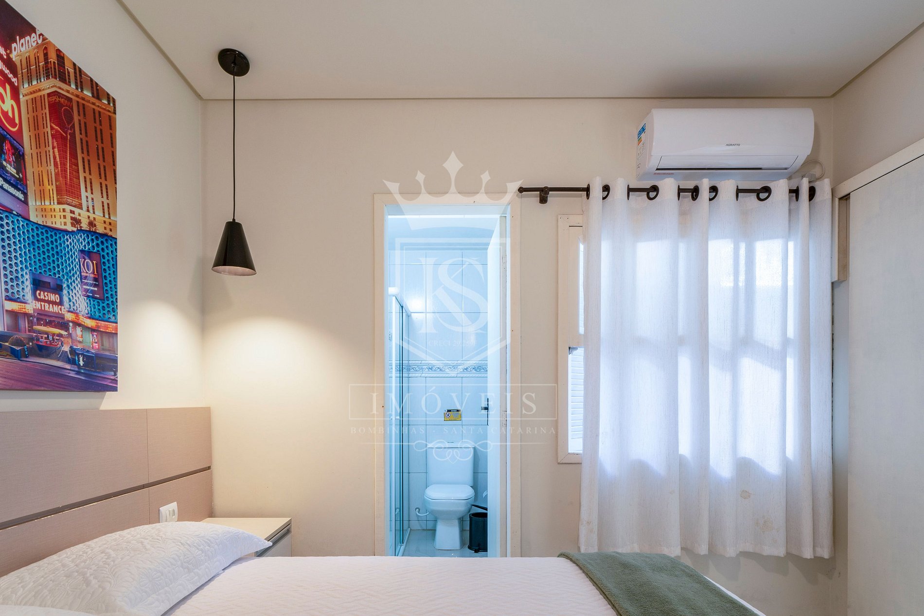 01 suíte com 1 cama de casal + 1 cama solteiro auxiliar, com ar condicionado;