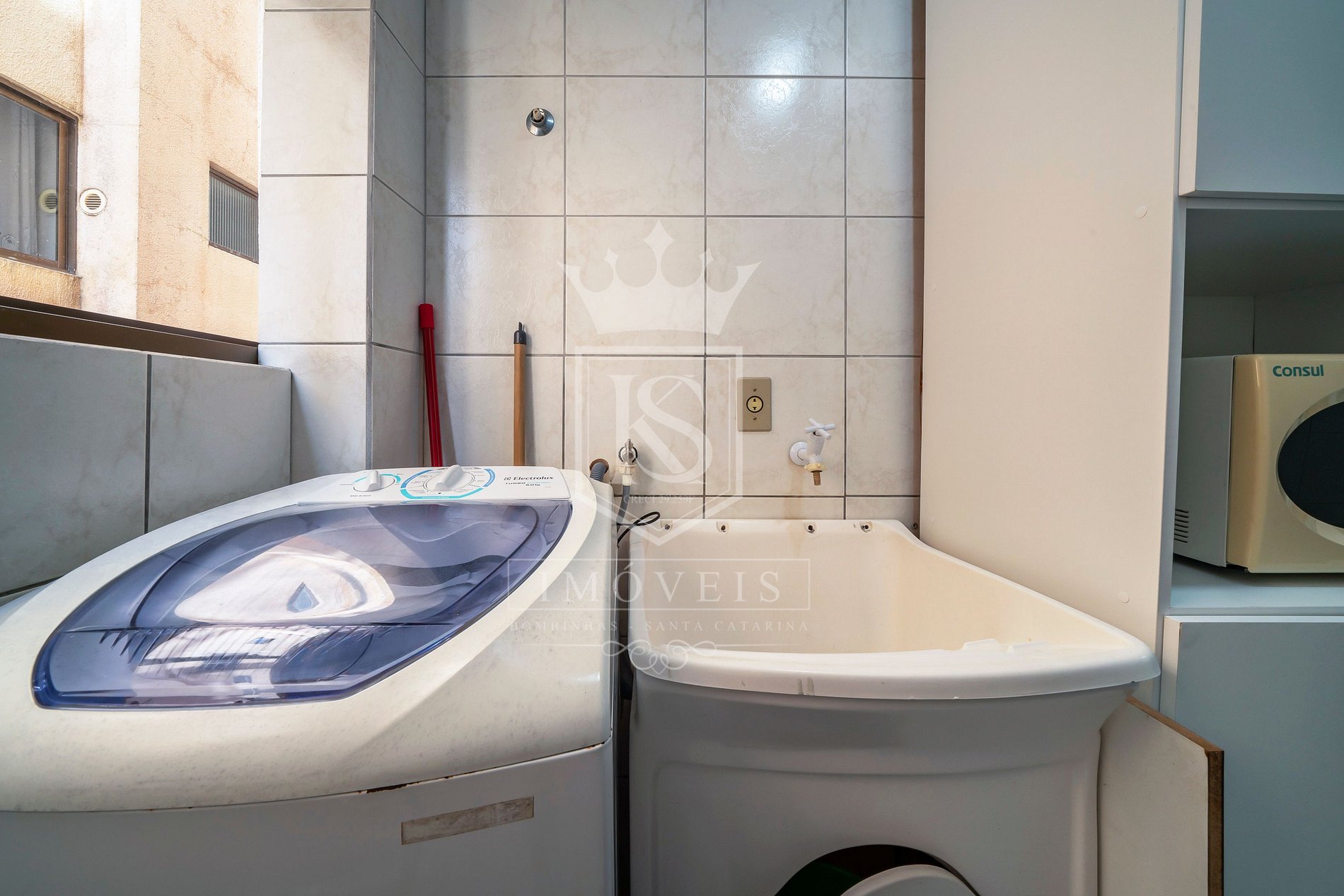 Área de serviço com máquina de lavar roupas;
