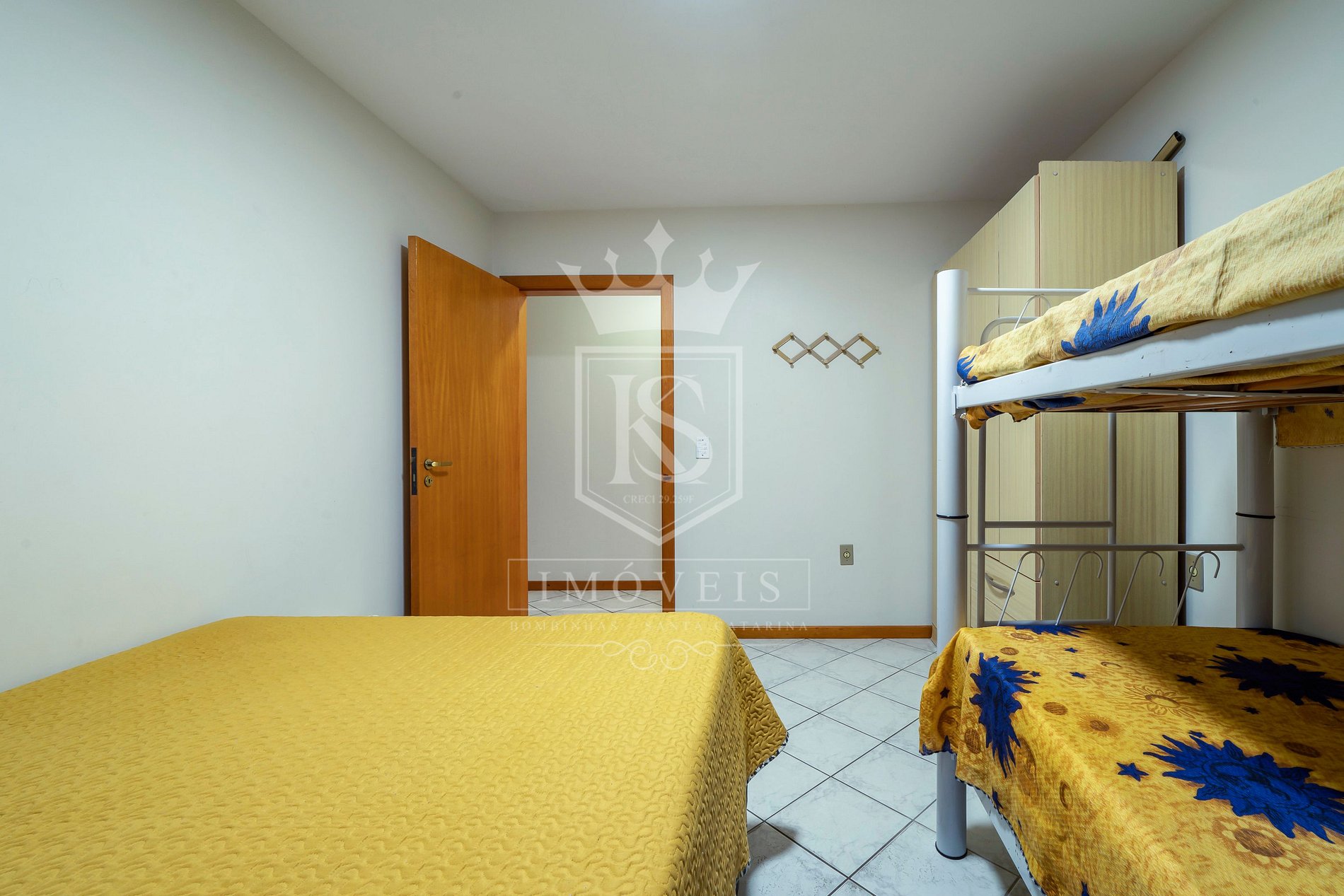 O apartamento acomoda até 6 pessoas. Possui 02 dormitórios, sendo: