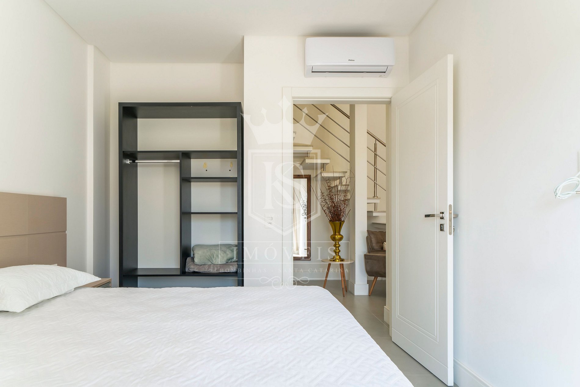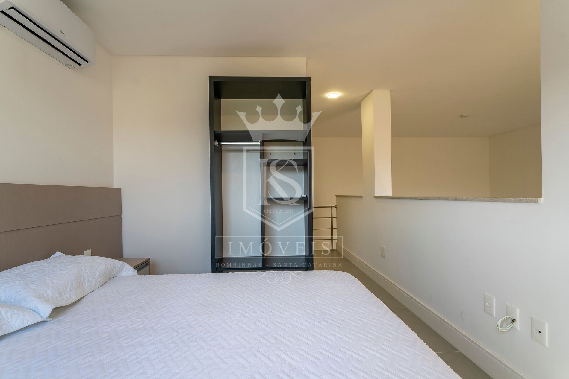 01 suíte no mezanino, com cama casal e ar condicionado;