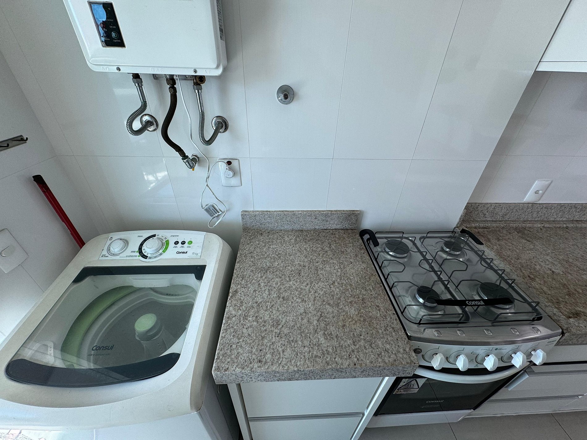 Área de serviço com máquina de lavar roupas;
