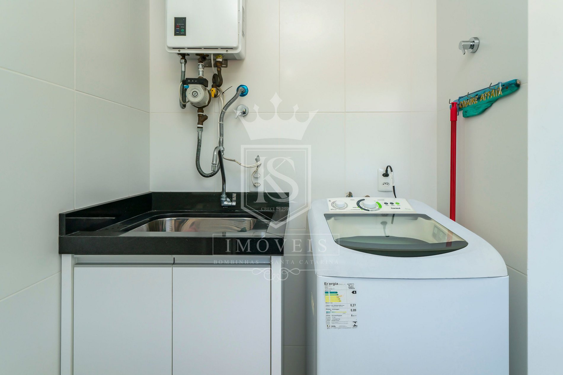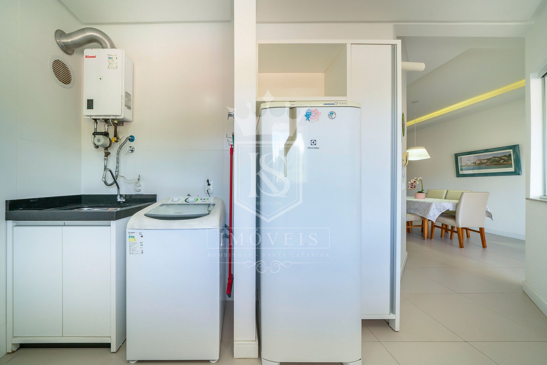 Área de serviço com máquina de lavar roupas;