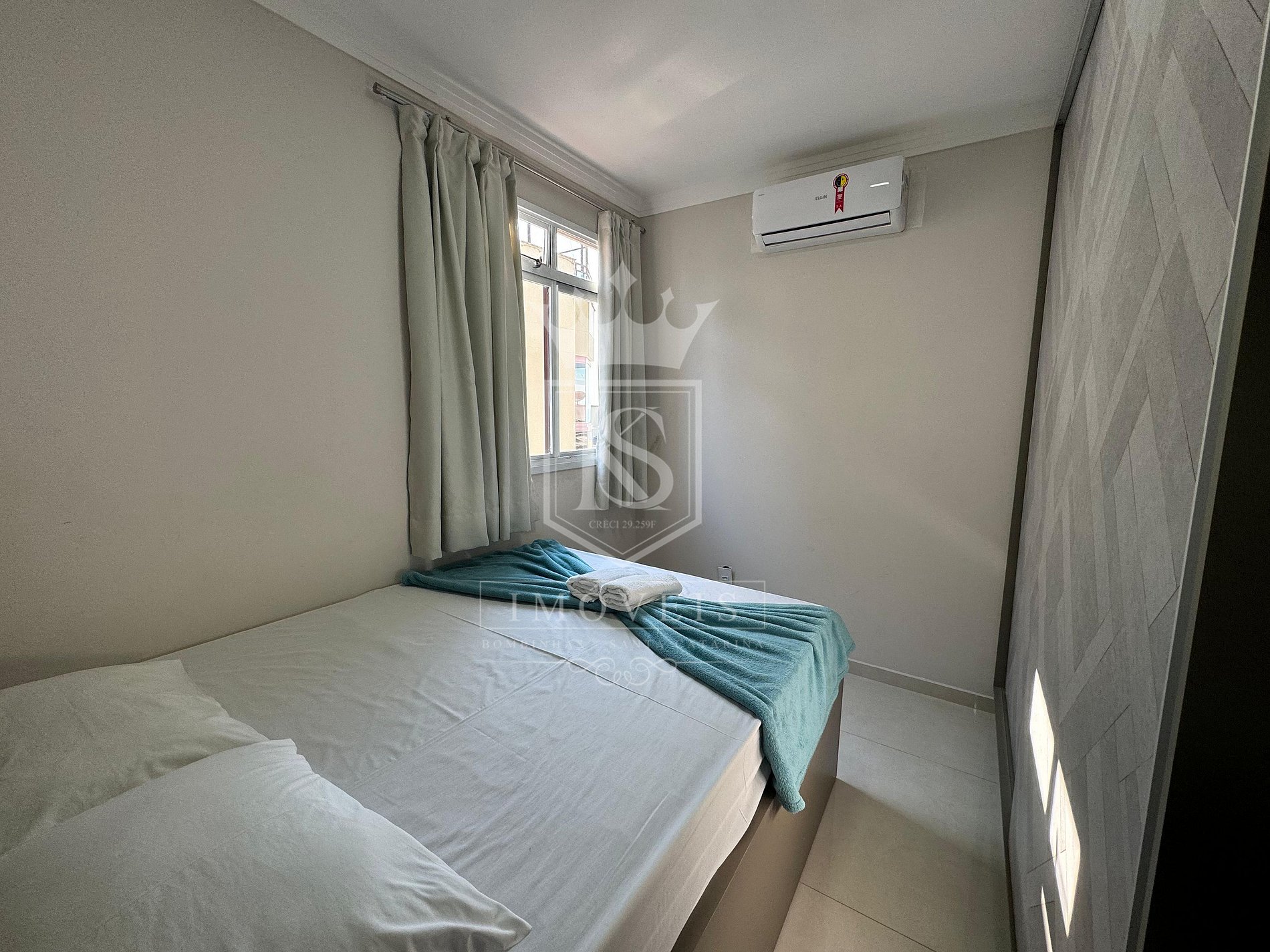 ✅ 01 dormitório com cama de casal, Ar condicionado e um colchão extra solteiro;
