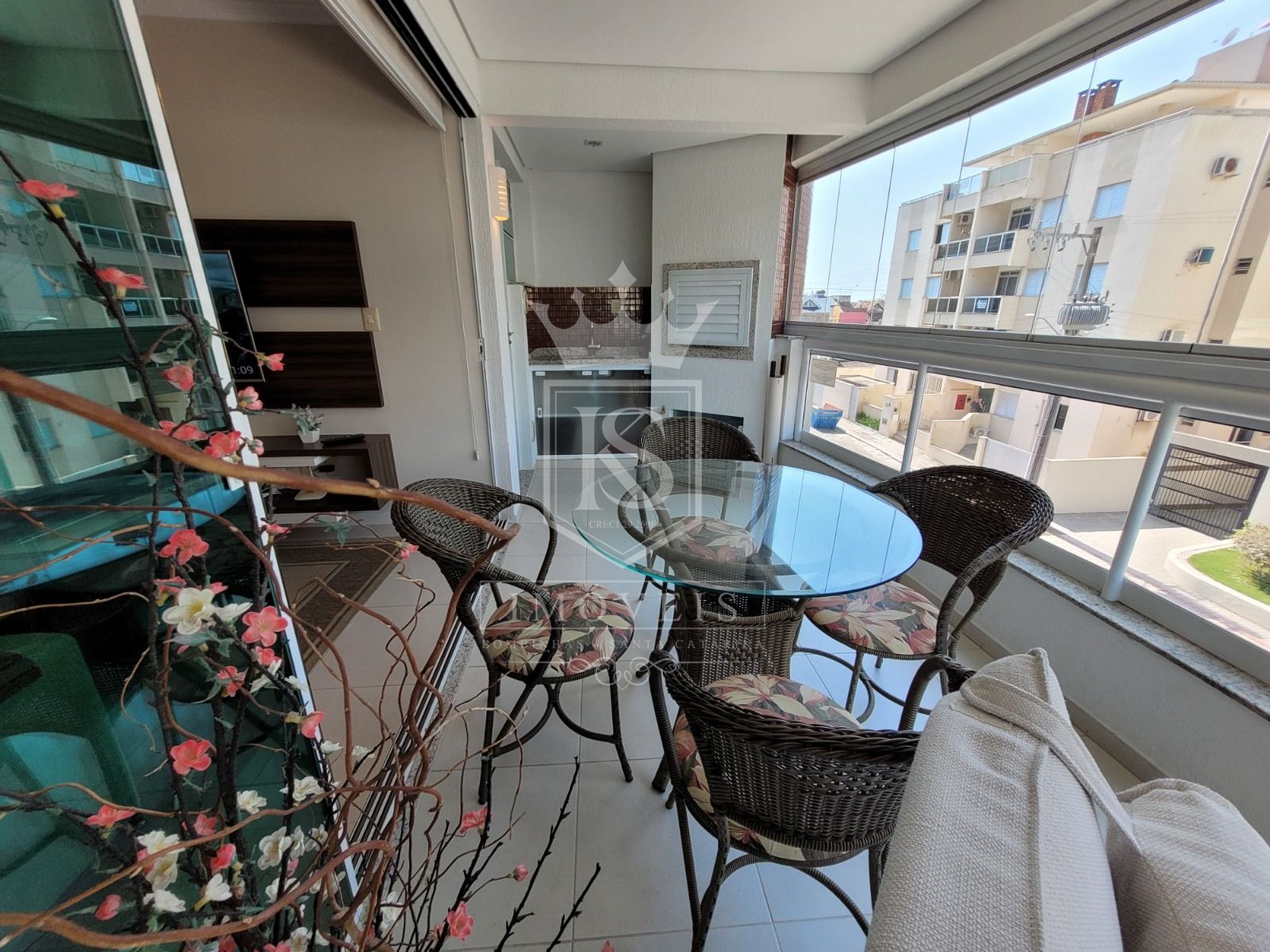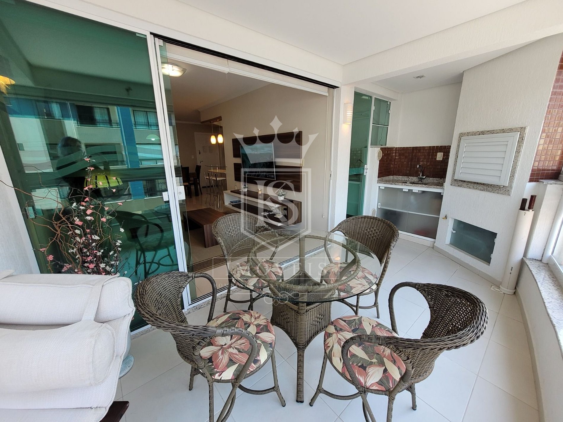 ✅ Sacada fechada em REIKI com abertura de 100%, com churrasqueira, e fogareiro para frituras, mesa com 4 cadeiras e