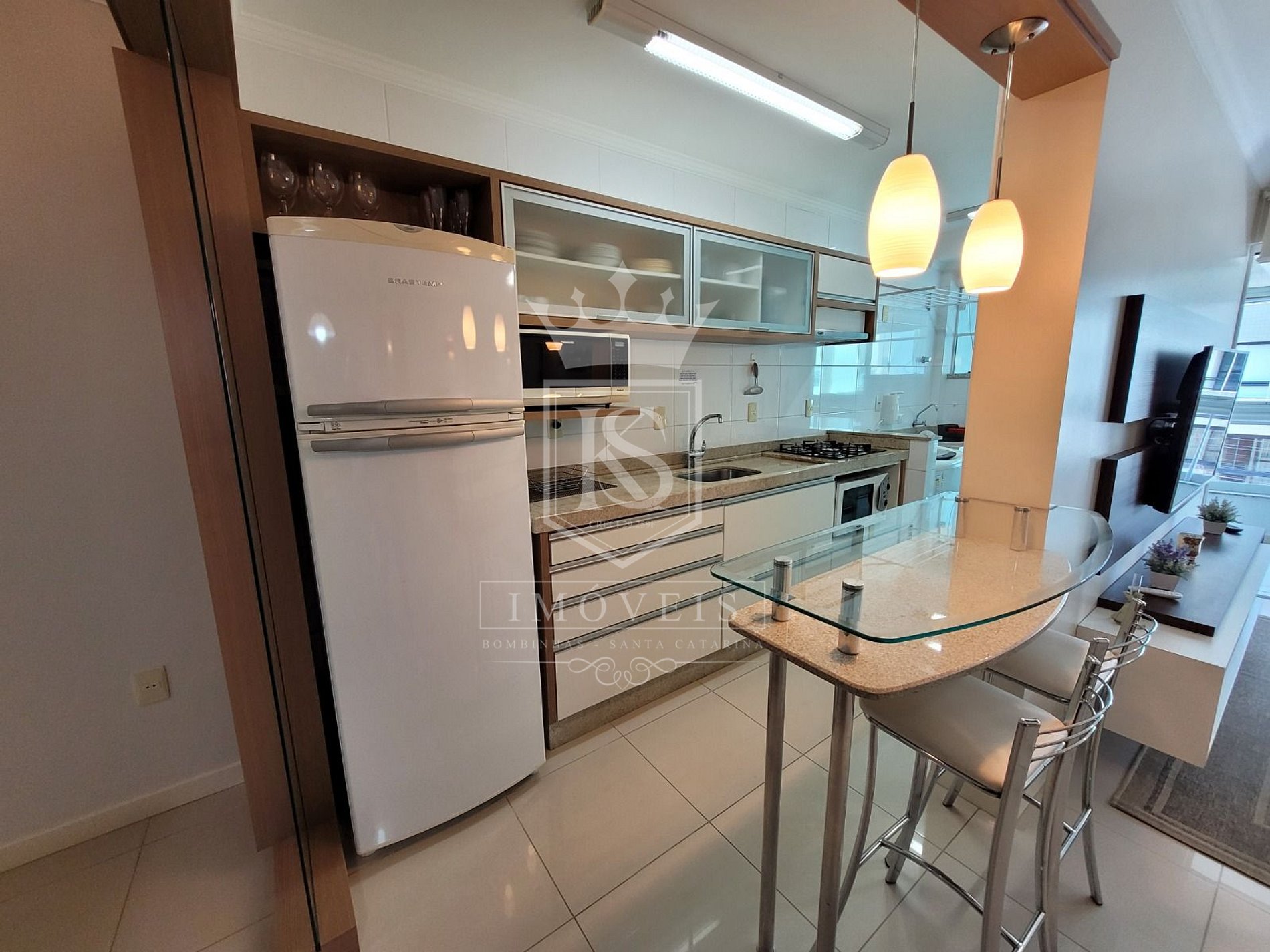 ✅ Cozinha equipada com bancada americana, geladeira duplex, fogão de mesa 4 bocas, forno elétrico, microondas, tostadeira, liquidificador, espremedor, ferro elétrico, depurador e demais utensílios básicos,