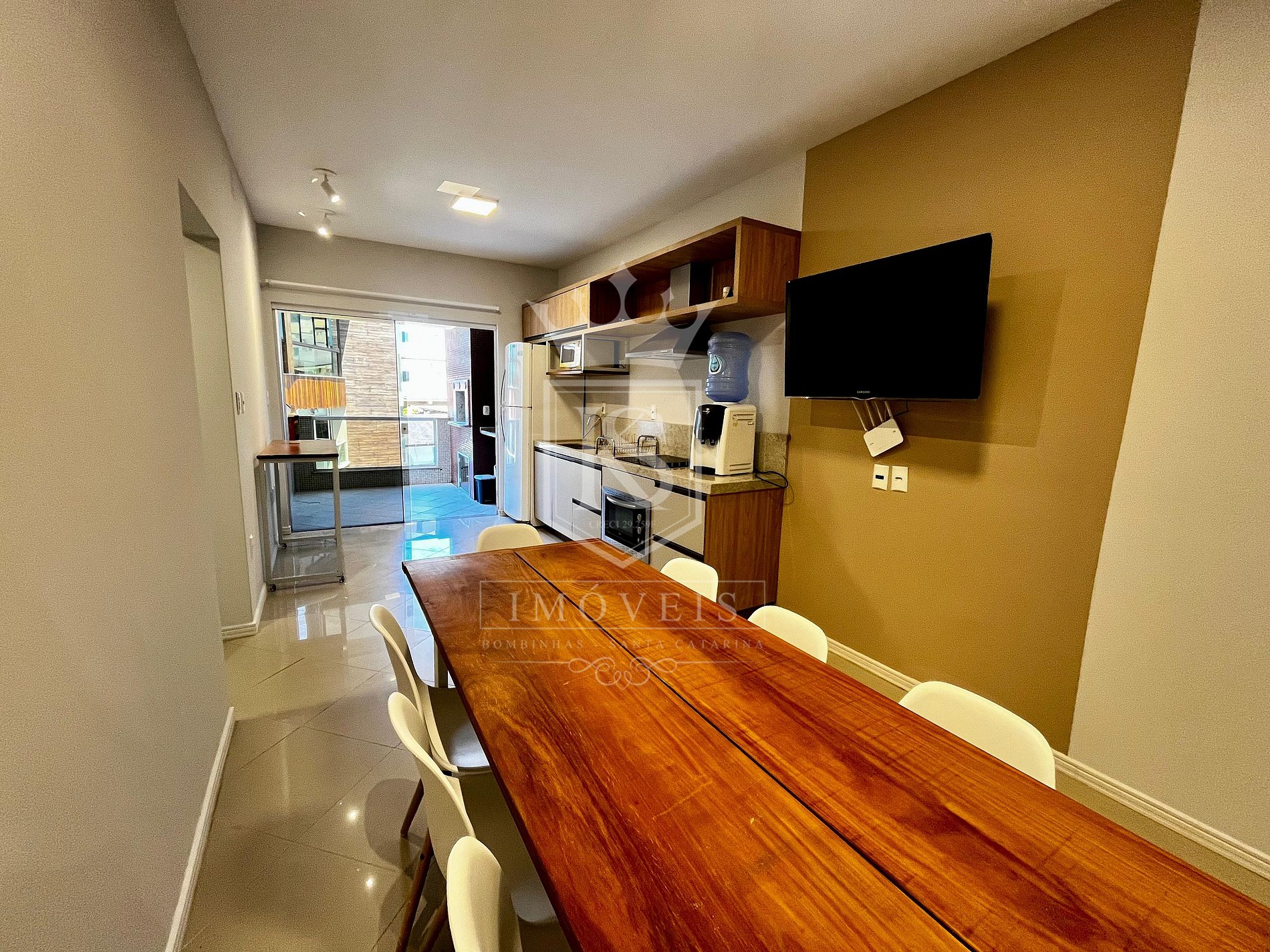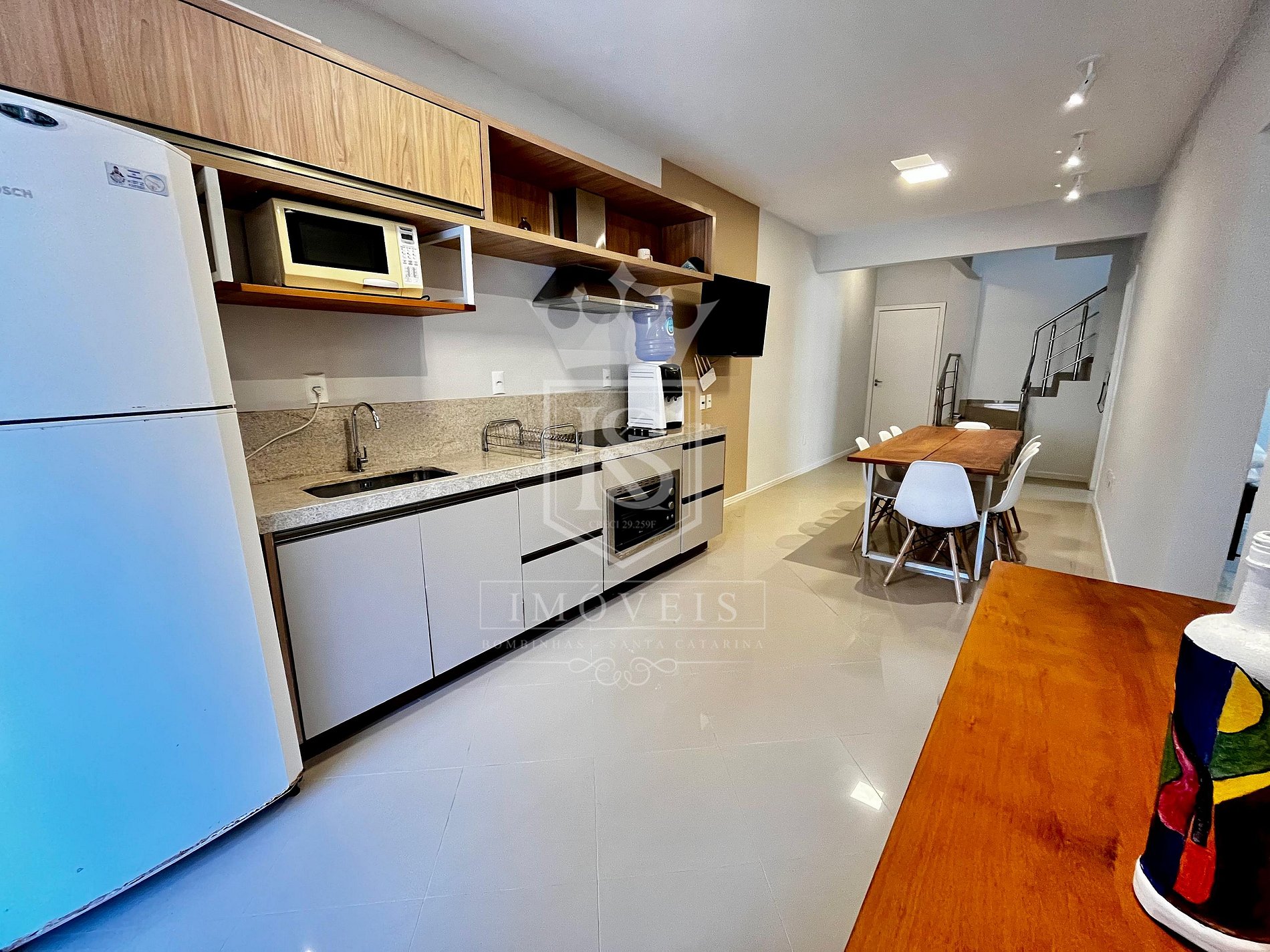 Sala de jantar e cozinha integradas;