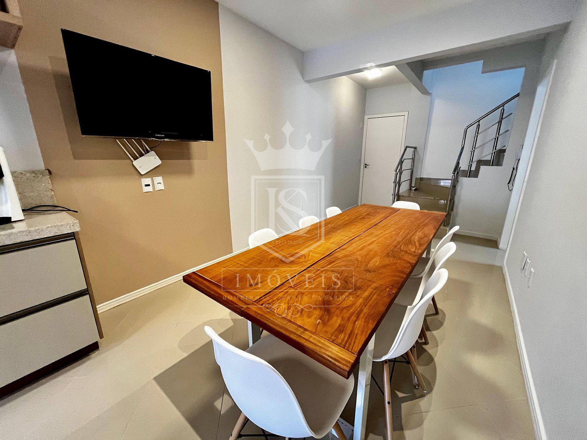 Sala de jantar e cozinha integradas;